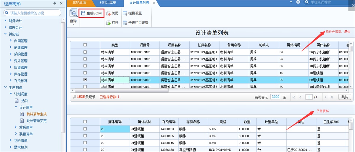 4)設計到生產(chǎn):設計出來(lái)的清單,推成ERP系統BOM檔案和相應的生產(chǎn)訂單;
