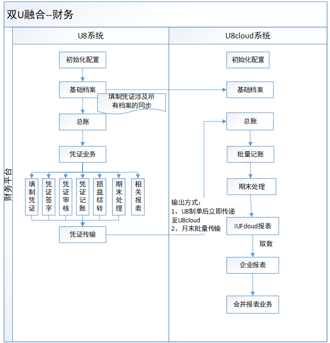 U8系統處理總賬相關(guān)業(yè)務(wù),憑證實(shí)時(shí)或月末傳遞至U8cloud系統。iUFOcloud企業(yè)報表根據U8系統傳遞的憑證進(jìn)行取數,生成各自分子公司的四大主表(資產(chǎn)負債表、利潤表、現金流量表、所有者權益變動(dòng)表);未企業(yè)出具合并報表提供數據。