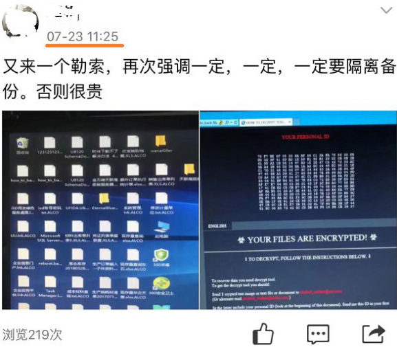 一年前肆掠的勒索病毒再次死灰復燃,新的變種開(kāi)始在全國范圍蔓延,我們U8的個(gè)別客戶(hù)也未能幸免。